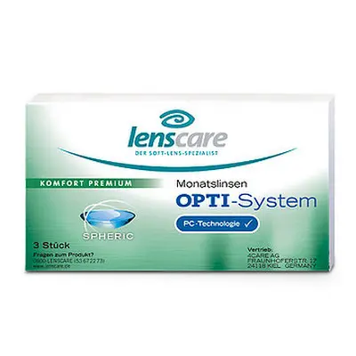 El OPTI-System Monatslinsen de Lenscare es un Lentes mensuales esféricas. El tiempo de uso típico es de 30 días. Sólo un paquete de lentes de contacto de 3. Así que un paquete durará 90 días o aproximadamente 3 meses para un ojo..